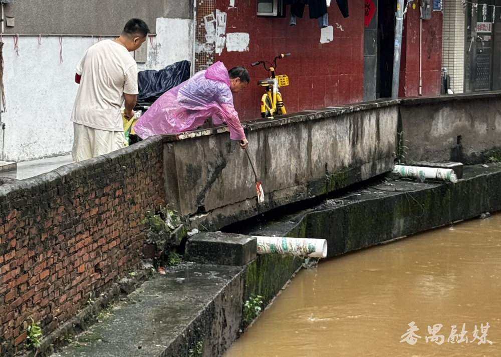 南村涌畔,邬射英正俯身打捞起河面漂浮的落叶与杂物。“汛期大意不得,一片落叶都可能堵塞排水管!”路过的村民李阿姨感叹道,“以前这河黑臭难闻,暴雨一来,巷子就成了‘水塘’。多亏邬书记带头搞雨污分流,还天天巡查,才换来更清澈的河水!”
