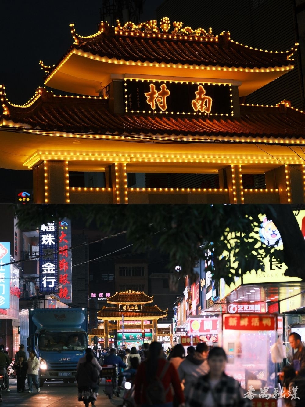夜市如火如荼,烟火升腾,南村村牌坊作为本村门面更不能落伍。2024年初,邬射英亲自挑选LED灯带、灯泡,对牌坊进行亮化工程改造。暮色中,柔和而明亮的灯光泻下,不只映照出南山大道内停放整齐的车辆、规范经营的摊贩,更温柔地照亮着街坊们从容的笑靥与红火的日子,这是邬射英在人间烟火与公共秩序间寻得的和谐亮色。