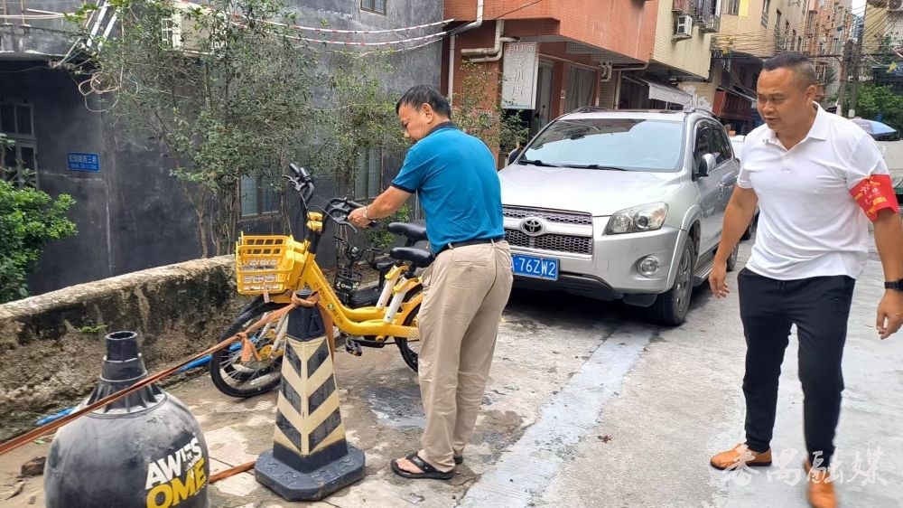 每当夜幕降临,南村牌坊一带化作众多食客寻味的“深夜食堂”;与之相应,个别摊位占道经营也严重阻碍了南村村主干道的交通顺畅。面对乱摆卖行为,邬射英选择走出办公室,投身到烟火中。他与摊主坦诚沟通,“老板,往里挪两步,生意照做,大家安全!”说话间,他已卷起袖管,搭手帮摊主将沉甸甸的小吃车推进划定范围内。